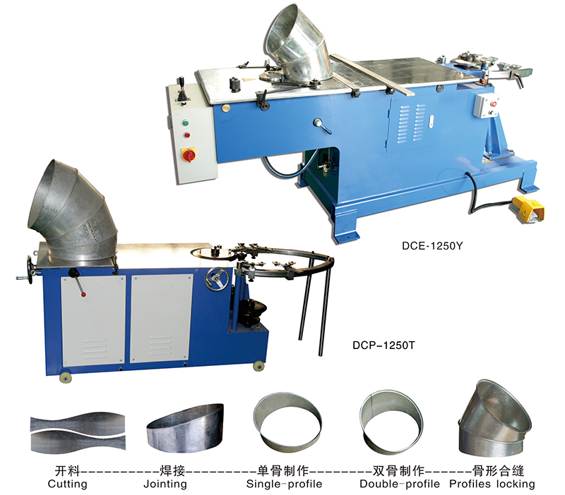 圓管彎頭咬口機有電動和液壓兩種,都具有兩個工作位:其中一個為單、雙制作,另一個用于接合骨型壓緊。